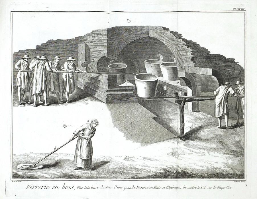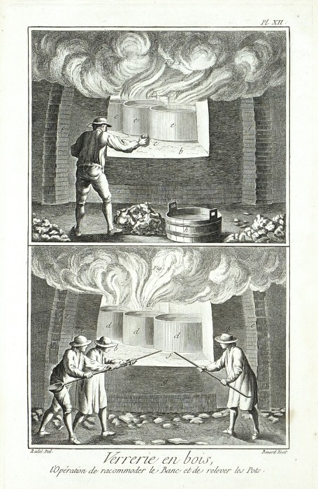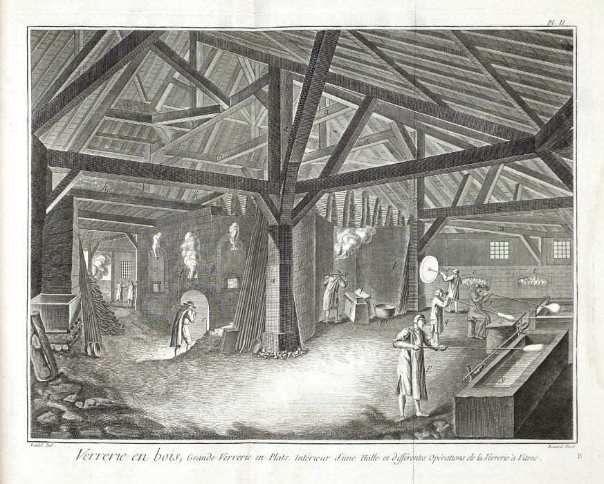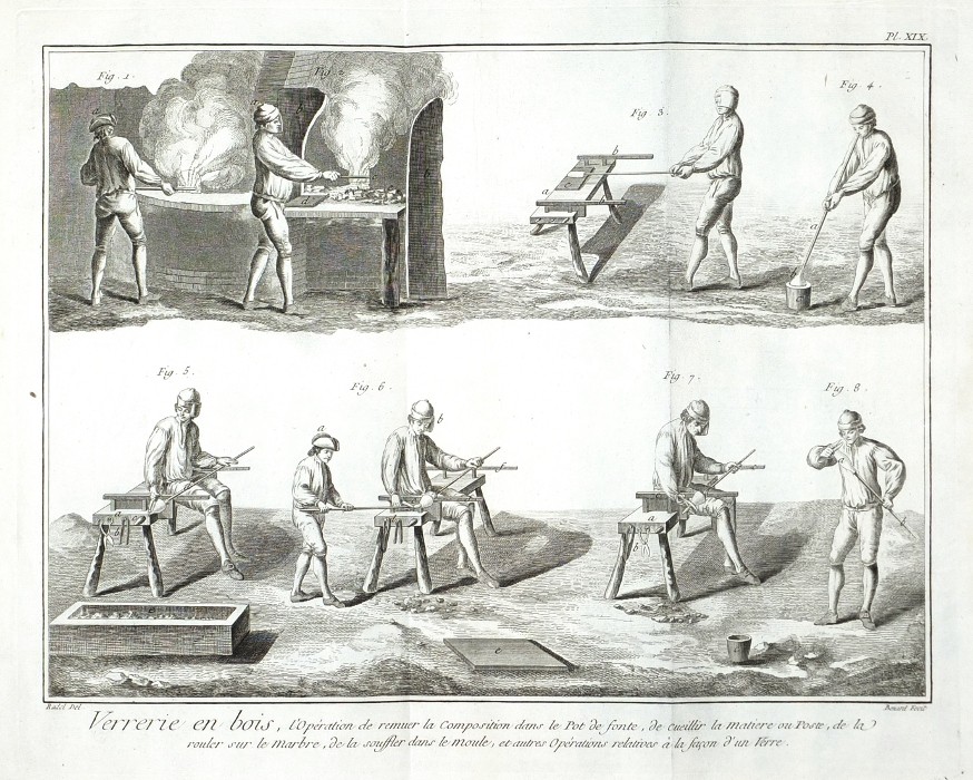 Diderot, d’Alembert. Encyclopédie. Glassmaking. Paris: Briasson and Le Breton, 1772. Complete section with a total of 54 copperplate engravings (engraved by J. R. Benard after L. F. Radel) and 9 pages of text.