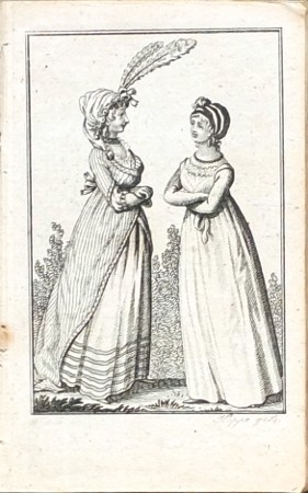 Frauenzimmer Almanach. "Frauenzimmer Almanach zum Nutzen u. Vergnügen für das Jahr 1799". Leipzig: A. F. Böhme, (1798). 16°. Frontispiz, gest. Titelbl., (20), 282 S. u. 14 (1 kol.) gest. Tafeln. OIll. Kart. Einb..